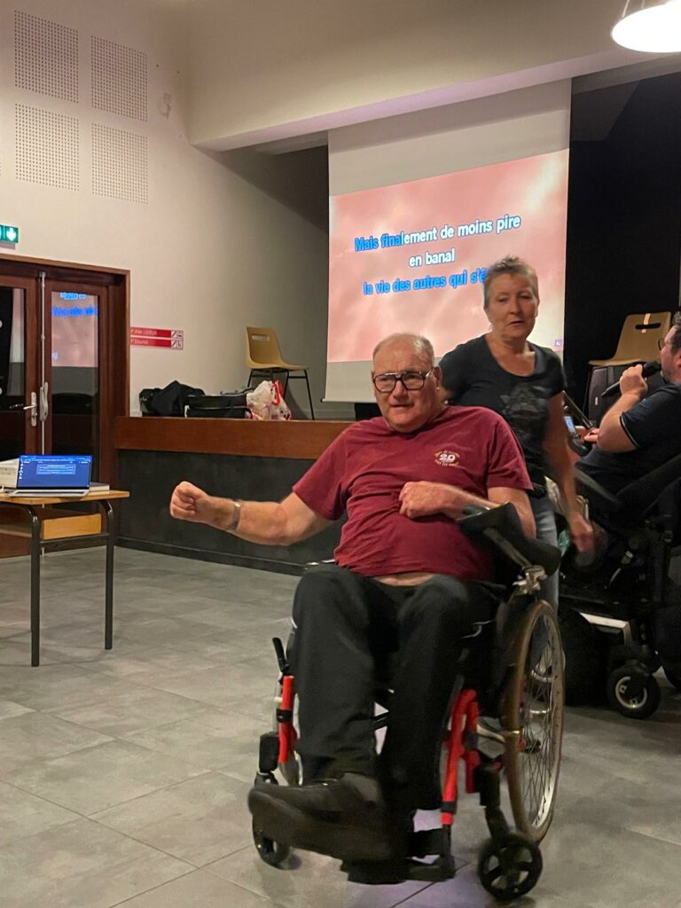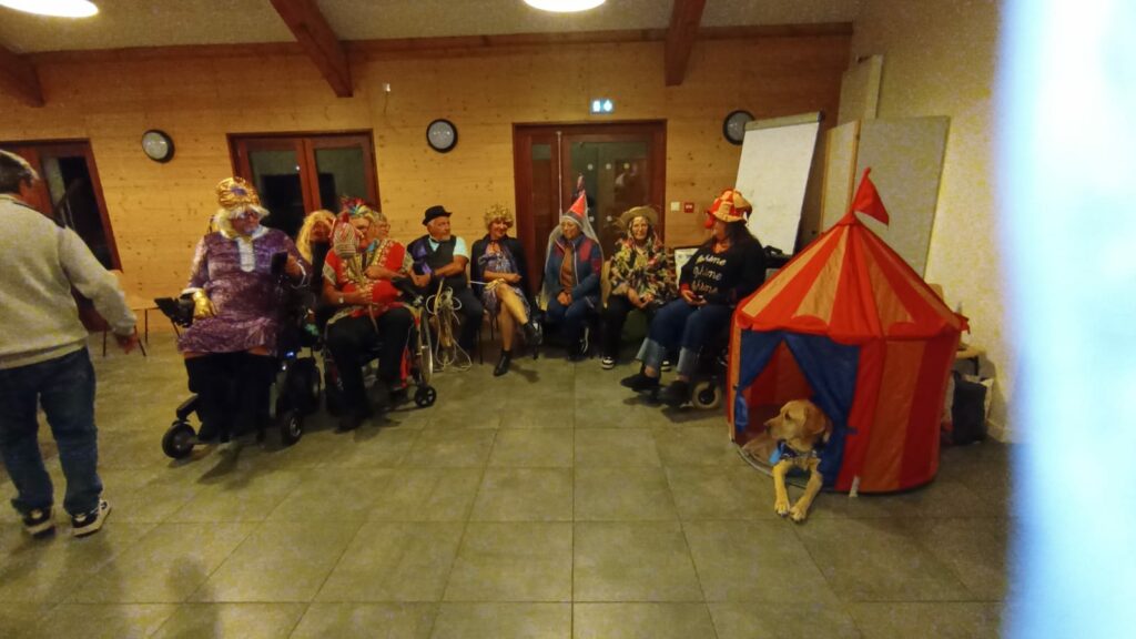 Mercredi soir : Spectacle Le cirque des Cabossés organisé par les adhérents PMR et les accompagnants, tous mélangés. Une grosse partie de rigolade avec un dompteur et sa ménagerie déchainée, une funambule et son assistante surdouées, un magicien on ne peut plus hilarant avec son assistante affriolante, Jérôme le lanceur de boulettes et son cheval Geronimo, et les Rataclowns désopilants.